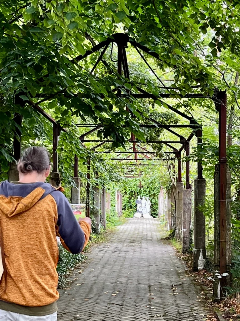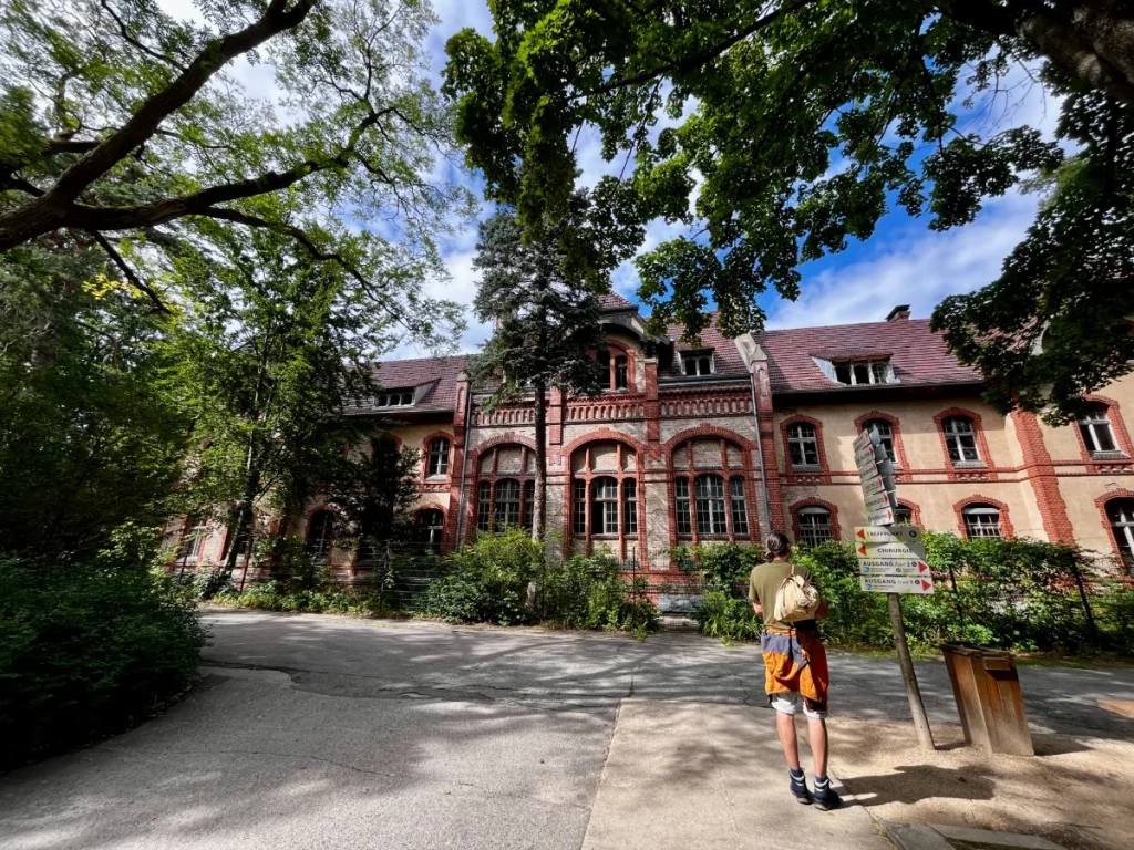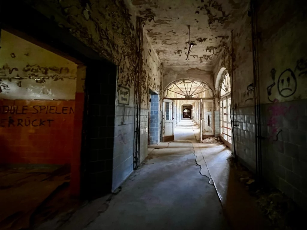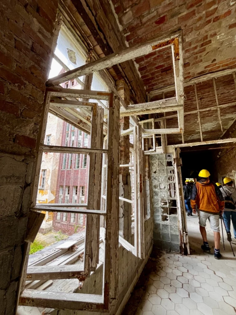 Besonders spannend fanden wir, während der Führung durch die als größte Lungenheilstätte des Deutschen Reiches, das Detail mit den Radios in den Zimmern und auf den Balkonen – man versuchte wirklich alles, um die Moral der Kranken hochzuhalten. Heute erobert sich der Verfall den Raum zurück, und das Licht, das durch die hohen Fenster fällt, verleiht der Szenerie etwas fast schon Geisterhaftes. Ein Ort, der einen ehrfürchtig werden lässt und noch lange nachwirkt. Man meint fast, das ferne Echo der Radios zu hören, von denen der Guide erzählte.