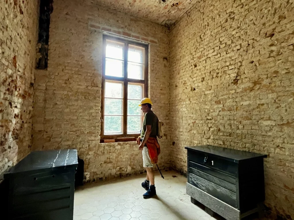Um 13 Uhr wurde es dann ernst: Unsere Führung durch die Alte Chirurgie startete. Ausgestattet mit schicken gelben Bauhelmen (modisch eher fragwürdig, aber sicher!) tauchten wir in die medizinische Welt von damals ein. Der Geruch von altem Staub und feuchtem Mauerwerk liegt förmlich in der Luft. Erstaunlich: Das Haus war seinerzeit moderner als mancher Neubau heute. Man hoffte damals, dass gute Laune, vitaminreiche Kost und die berühmte „Beelitzer Frischluft“ die Heilung der Infektionskrankheit Tuberkulose, verursacht durch das Mycobacterium tuberculosis, ermöglicht. Tatsächloich lag die Überlebensrate lag dank dieser Kuren bei immerhin bei 20 bis 30 Prozent – in einer Zeit vor Antibiotika war das ein medizinischer Triumph.