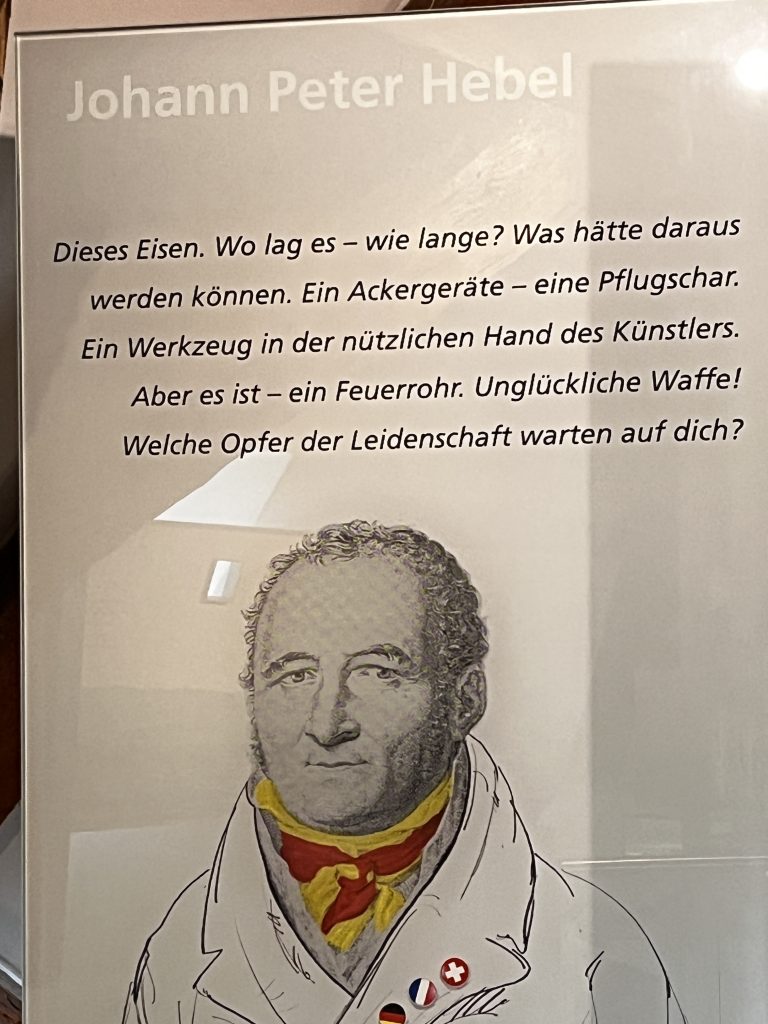 Frisch gestärkt ging es weiter nach Müllheim ins Museum. Wer denkt, Heimatmuseen seien staubig, irrt gewaltig! Von frühzeitlichen Funden über prachtvolles Mobiliar aus „Anno dazumal“ bis hin zu moderner Kunst war alles dabei. Besonders spannend fanden wir die Anekdoten rund um das berühmte Gemälde der „Kartenspieler“ aus der Revolutionszeit 1848 – da bekommt Geschichte plötzlich ein Gesicht. Auch dem großen Johann Peter Hebel wurde hier ein würdiges Denkmal gesetzt.