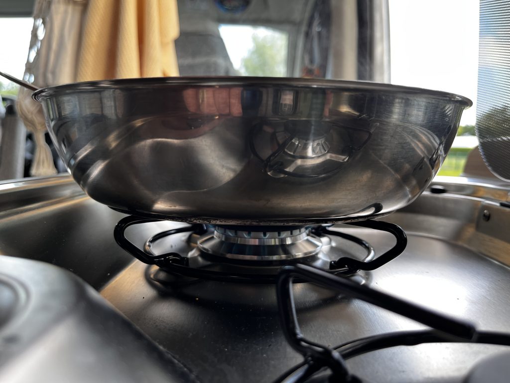 Nach dem musikalischen Einstand am Friedhof zogen wir weiter nach Meißenheim. Unser Ziel: Ein gemütlicher Stellplatz auf einer Wiese, die Sonne im Gesicht und – ganz wichtig – Kochen unter freiem Himmel. Denn eines war klar: Der Rauchmelder sollte heute Sendepause haben.