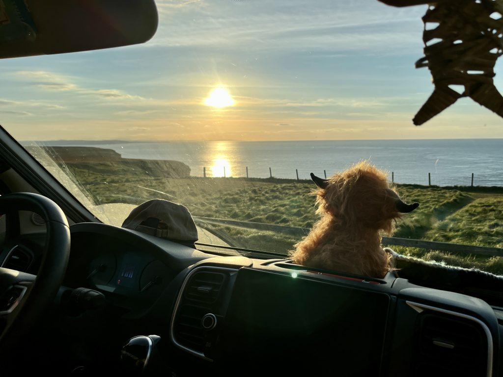 Angus, unser treues Highland Cattle, ist das knuffige Maskottchen und der heimliche Chef der kuscheligen Truppe. Gemeinsam mit Wuff, Bärbel und dem sensiblen Lämmchen Fiona repräsentiert er die vier Enkelkinder von Karin und Ingo. Sein haariges Fell und die wilde Mine machen ihn zum perfekten Reisebegleiter im Van namens Kätter. Mit seinen drei plüschigen Freunden ist er neugierig und meist gut gelaunt, erlebt alle Abenteuer hautnah mit und sorgt als stummer Zeuge für die nötige Portion Gemütlichkeit und Humor auf jeder Route.